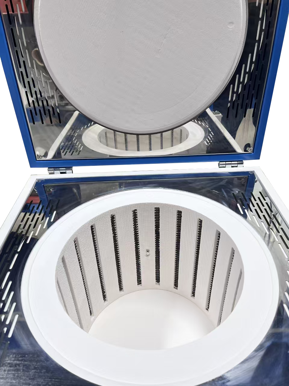 ?爐體結構:上開門式爐門結構,方便取樣;采用雙層殼體結構,并帶有風冷系統;爐膛采用高純氧化鋁纖維材料,最大程度的減少能量損失;內爐膛表面涂有美國進口的高溫氧化鋁涂層,可以提高反射率及設備的加熱效率,同時也可以延長儀器的使用壽命,有過熱和斷偶保護,并設有開門斷電功能;在爐底安裝耐火磚,可以防止爐襯磨損。