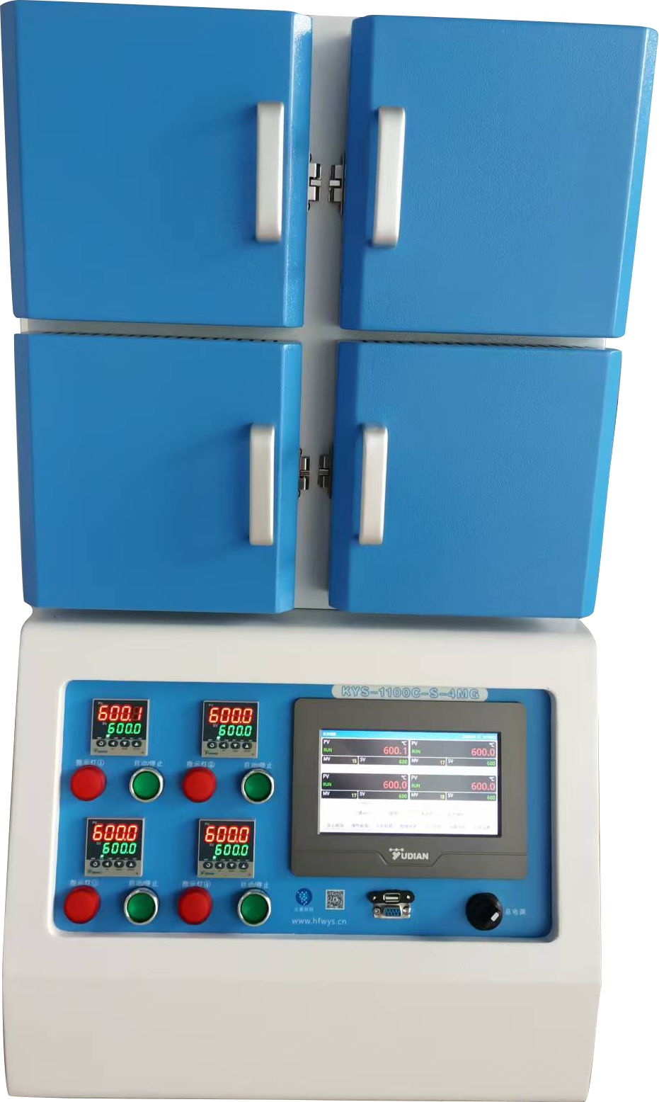 · 可同時放入4個樣品,在不同溫度下進行熱處理高純氧化鋁纖維作為爐膛材料,表面涂有氧化鋁涂層,可提高爐膛加熱效率,延長爐膛使用壽命;
